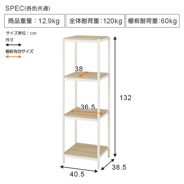 ウッドラック 幅40cm 4段 アンドコネクト オープンラック 幅40.5×奥行38.5×高さ132cm CN-40134