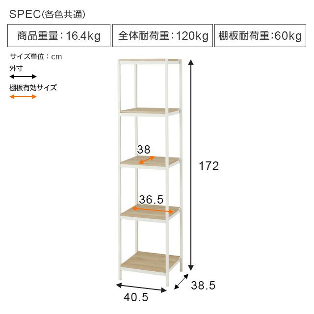 ウッドラック 幅40cm 5段 アンドコネクト オープンラック 幅40.5×奥行38.5×高さ172cm CN-40175