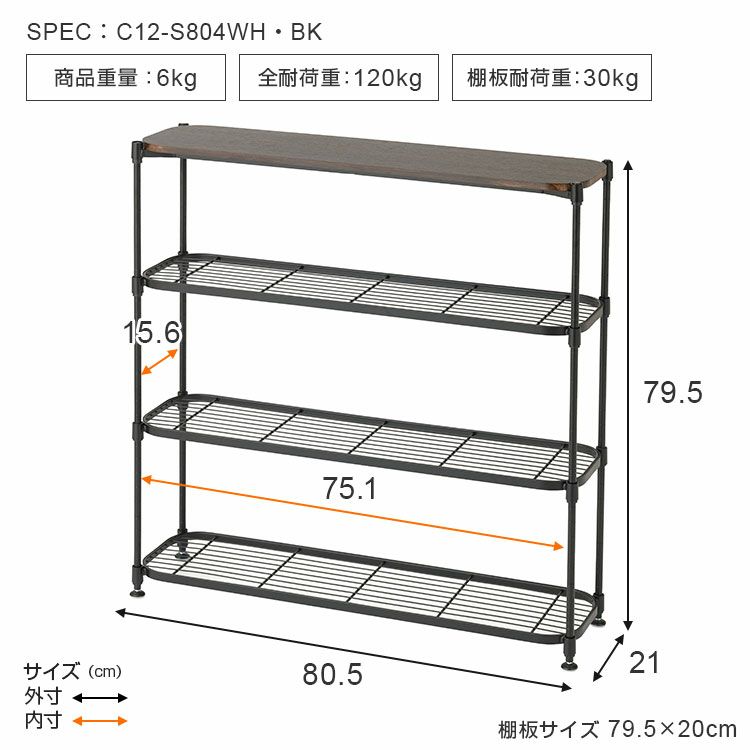 スチールラック 幅40cm 4段 ルミナススマート 玄関収納 キッチン収納 幅80.5×奥行21×高さ79.5cm C12-S804