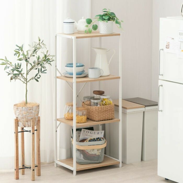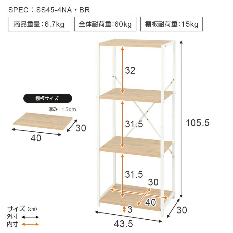 オープンラック 幅45cm 4段 ウッドラック フリーラック 木製棚 幅43.5×奥行30×高さ105.5cm SS45-4