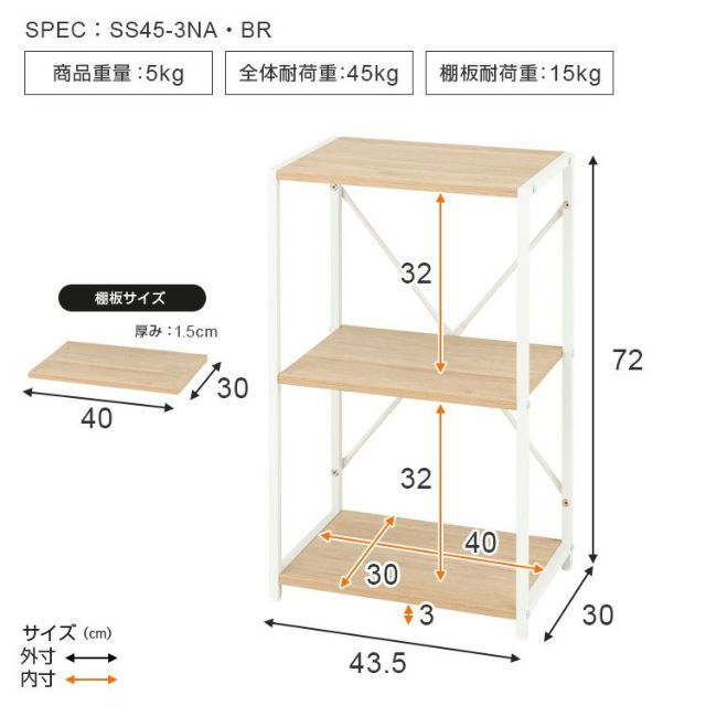 すっきりシェルフ3段(45W) |