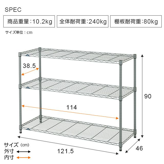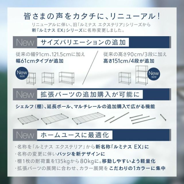 スチールシェルフ 幅121.5×奥行46cm グレー ルミナスEX スチールラック パーツ 棚 ポール径25mm用 幅120cm EX25-S12GY NEW 交換保証対象品 ネット限定 ¥ 3,980 税込 カートに入れる