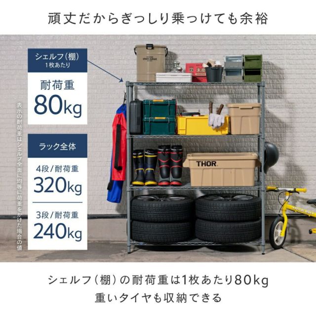 スチールラック 幅120cm 4段 幅121.5×奥行46×高さ151cm ルミナスEX グレー EX25-124GY