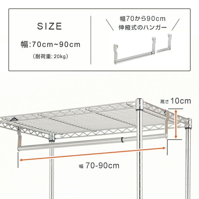 ハンガーポール 伸縮式 ルミナス スチールラック ポール径19mm用パーツ 19HP