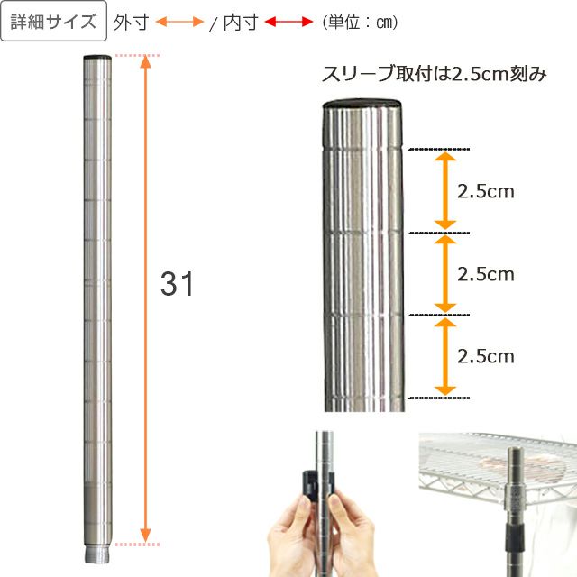 延長用ポール ルミナスライト ポール径19mm スチールラック パーツ ADD-19