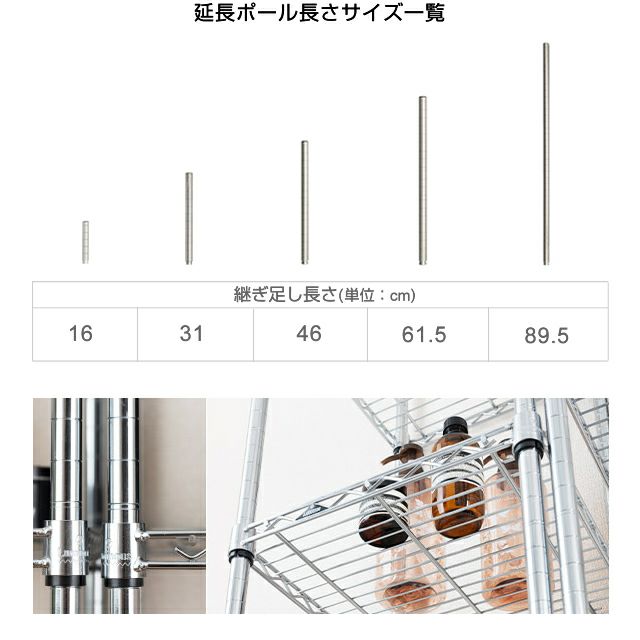 備考 2011年以前に購入いただいたラックは、ポールの仕様変更があり延長できません。