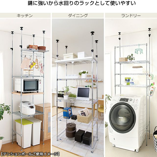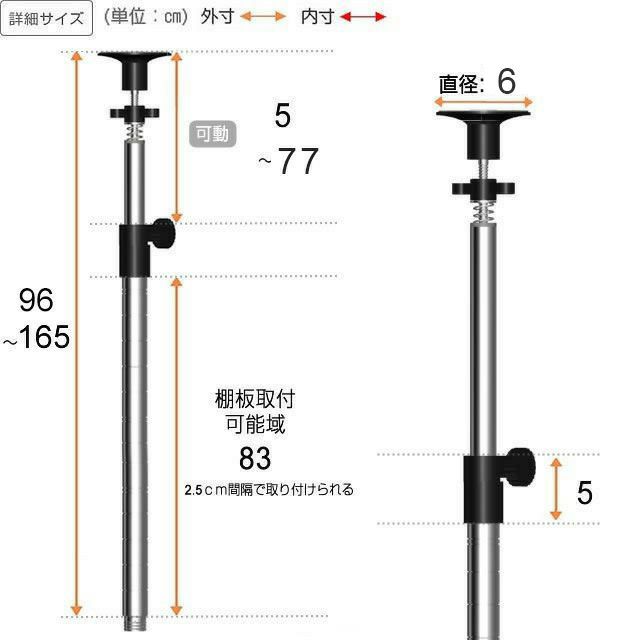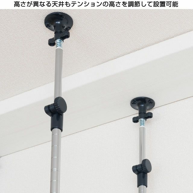 材質 ポール:スチール(クロームメッキ)、テンション部分:ポリプロピレン・ABS樹脂