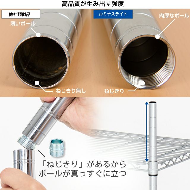 延長用突っ張りポール ルミナスライト ポール径19mm スチールラック パーツ ADD-19J