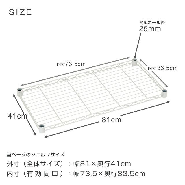 スチールシェルフ 幅81×奥行41cm ルミナスラテ スチールラック パーツ ポール径25mm用 棚 幅80cm EHES8040WH