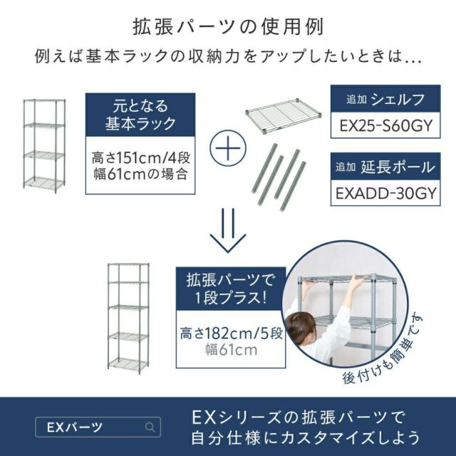 延長用ポール ルミナスEX ポール径25mm スチールラック パーツ EXADD