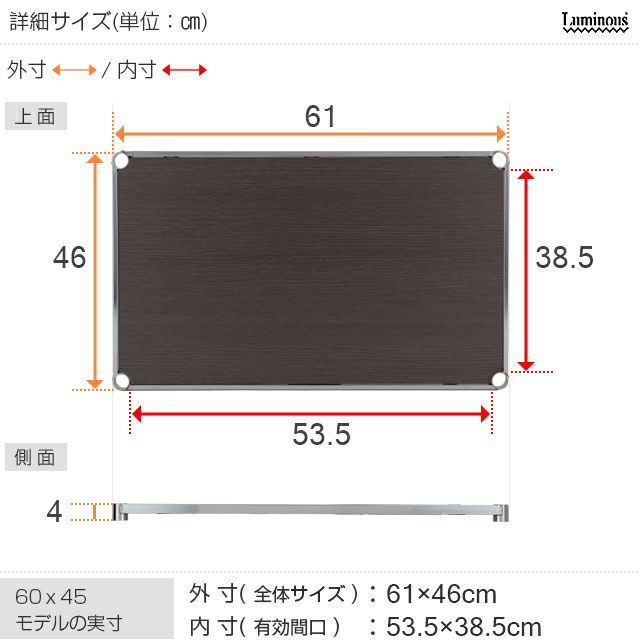 木製シェルフ 幅61×奥行46cm ルミナス スチールラック パーツ ポール径25mm用 棚 幅60cm LWS6045