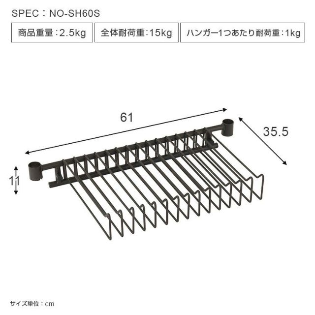 NO-SH60S/本体×1、ハンガー×15本、ストッパー×2個、スリーブ×2組(+予備1組)