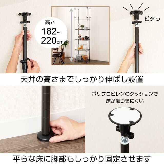 突っ張りポールセット ルミナスノワール ポール径25mm スチールラック パーツ 長さ182-220cm NOADD-P2200