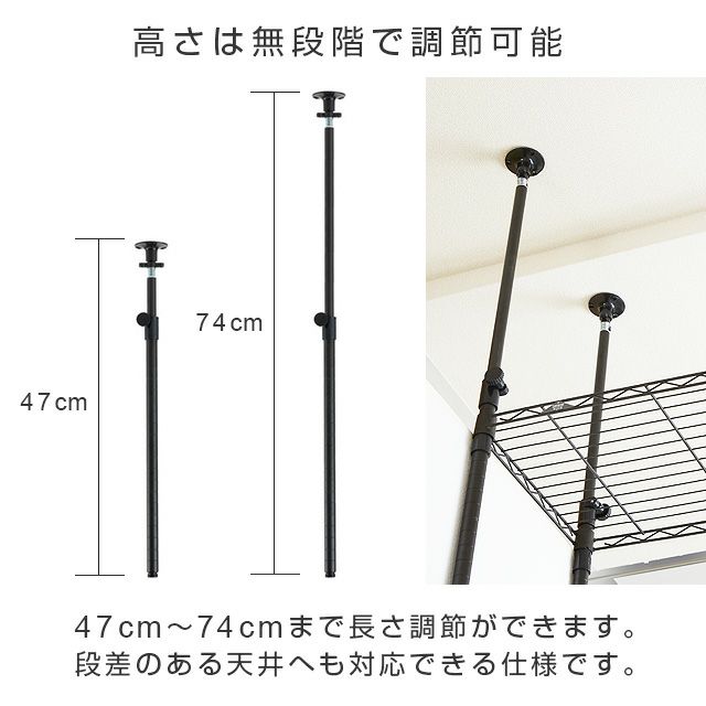 延長用突っ張りポール ルミナスノワール ポール径25mm スチールラック パーツ NOADD-PJ