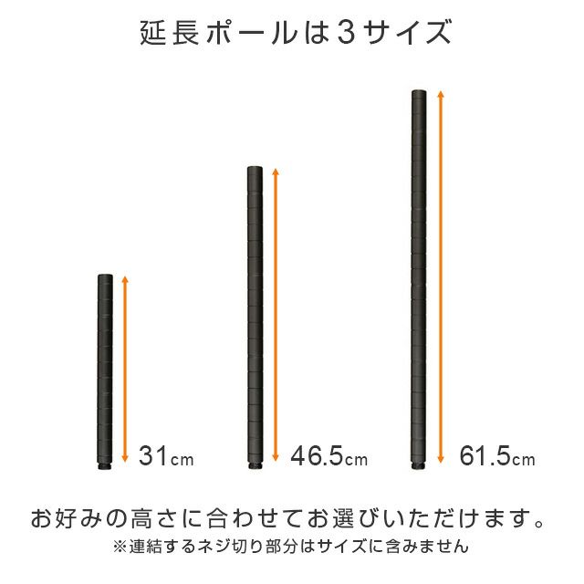 延長用ポール ルミナスノワール ポール径25mm スチールラック パーツ NOADDP25