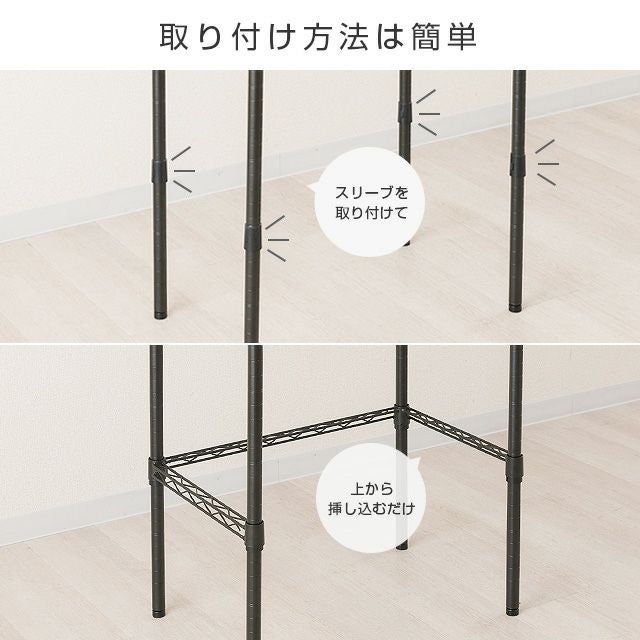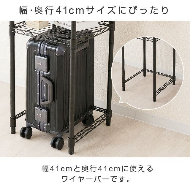 ノワールシリーズを長年利用しております。単身の引越しに伴い60cm幅の5段ラックとコの字バーを買い冷蔵庫上に家電を置けるようにしました。 予想以上にしっくりいったので満足です。