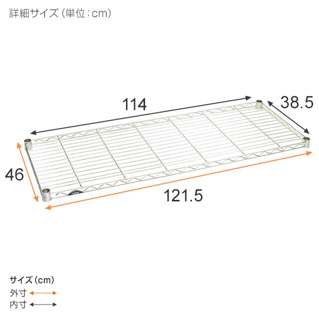 セット内容スズメッキ加工 ワイヤーシェルフ(棚板)×1枚
