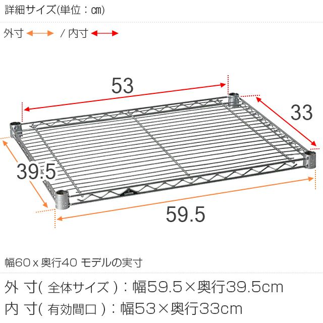 スチールシェルフ 幅59.5×奥行39.5cm ルミナスライト スチールラック パーツ ポール径19mm用 棚 幅60cm ST6040