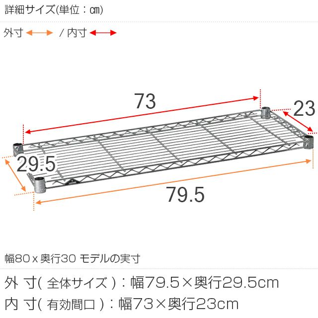 スチールシェルフ 幅79.5×奥行29.5cm ルミナスライト スチールラック パーツ ポール径19mm用 棚 幅80cm ST8030