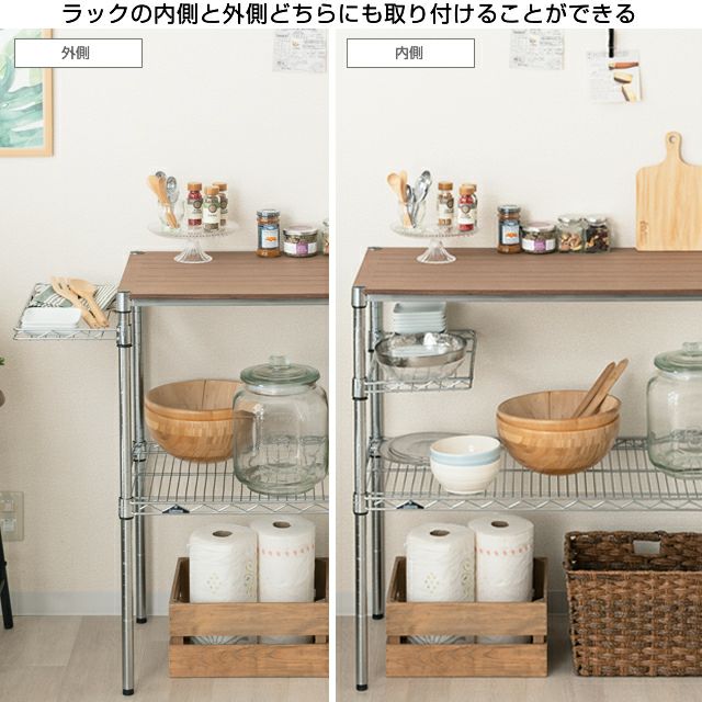 備考25mmポール、奥行46cmの棚板を使用したラック全てに取り付け可能。