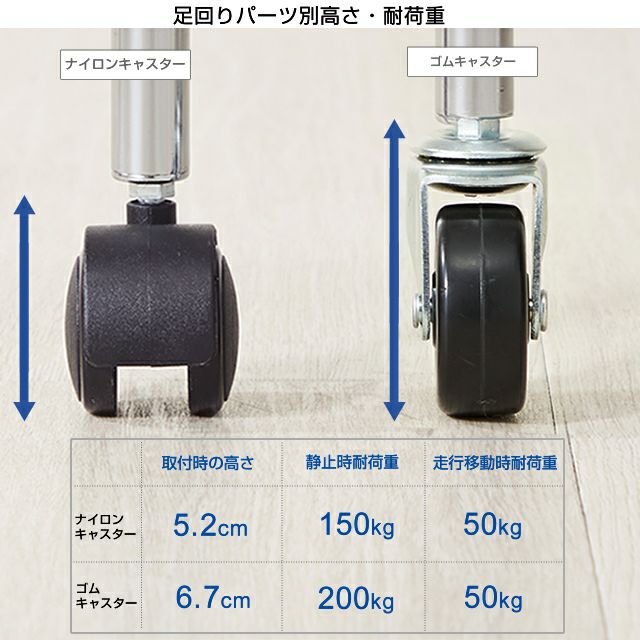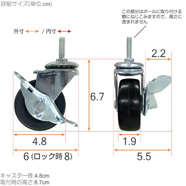 外形寸法 ゴムキャスター:(約)高さ6.7cm