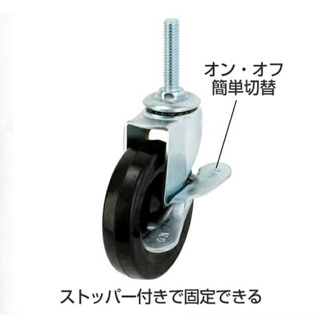 4個セット(CT-GN50xCT-GL50):ゴムキャスターストッパー付×2、ゴムキャスター×2