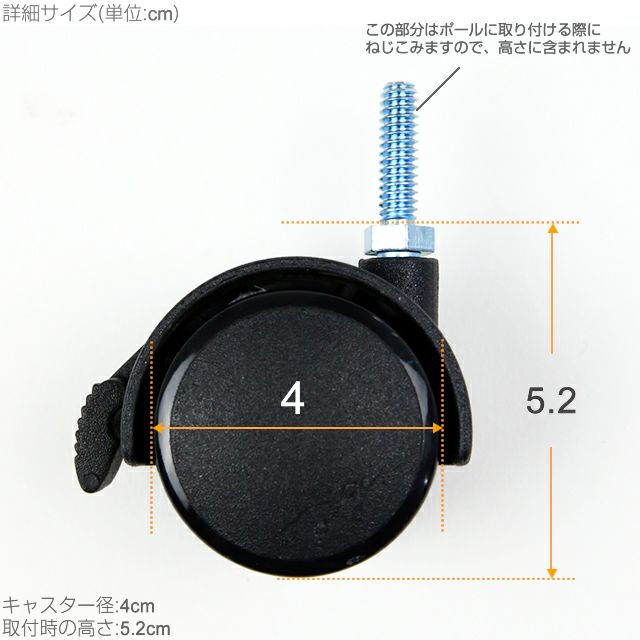 外形寸法 ナイロンキャスター:(約)高さ5.2cm
