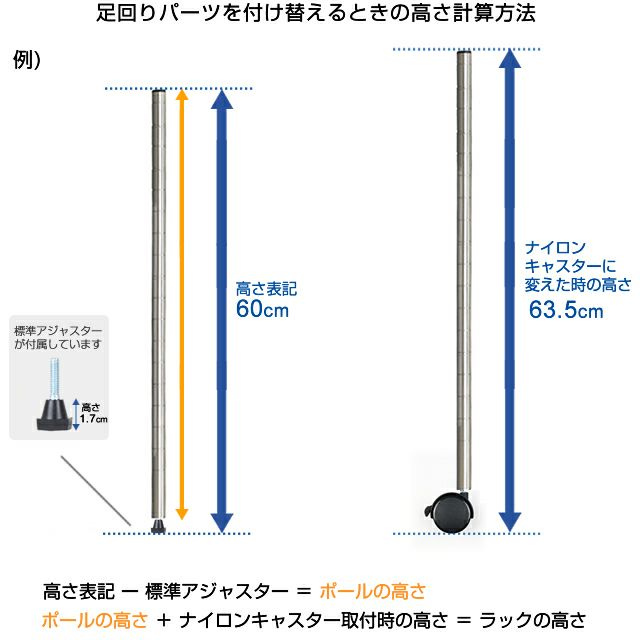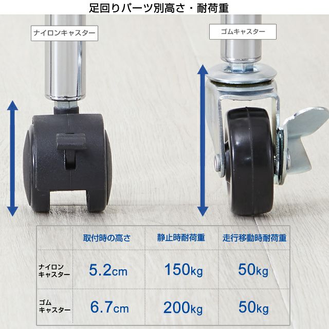 材質 ナイロンキャスター:ナイロン樹脂、スチール(亜鉛メッキ)