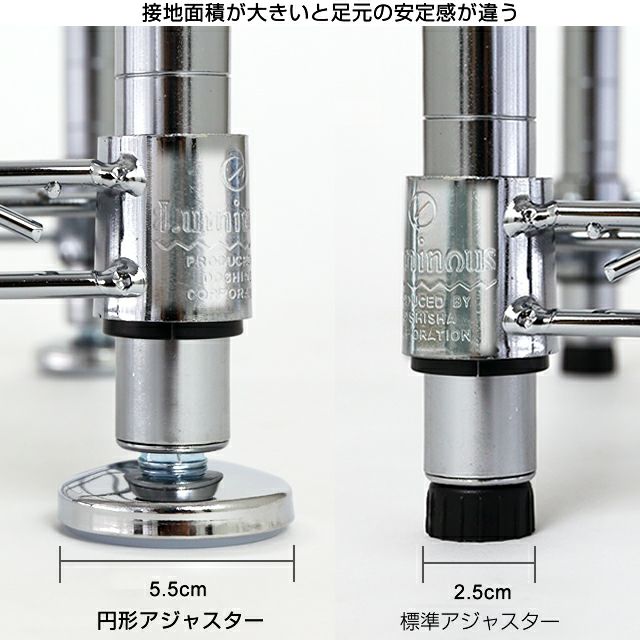 標準アジャスターと比べて安定感が大きく増します。 質感も光沢があり見栄えがします。