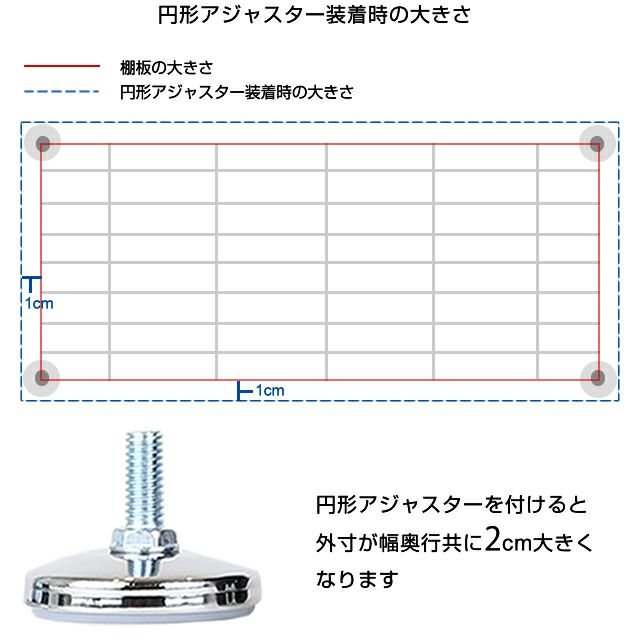 円形アジャスター ルミナス ポール径25mm用 スチールラック 足回りパーツ P-AP
