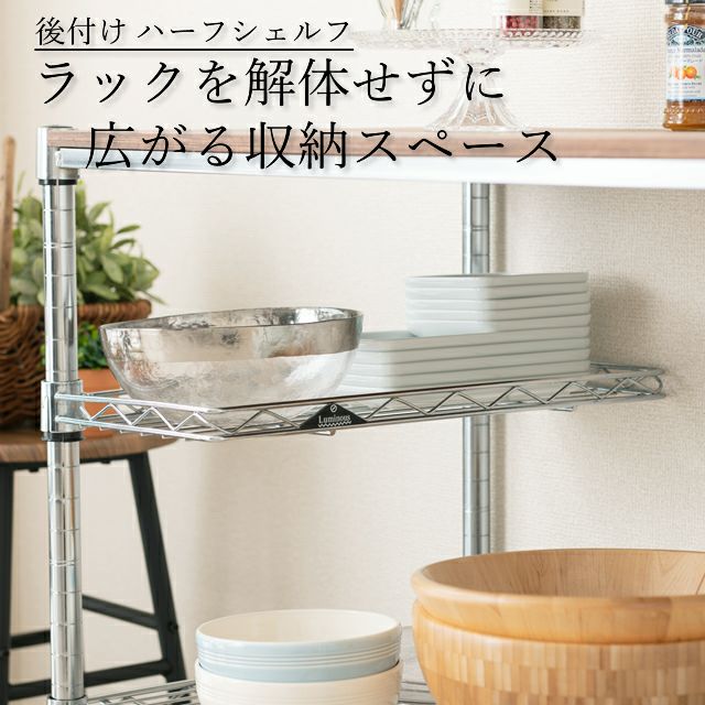 後付け簡単ハーフシェルフ 幅46×奥行25.5cm ルミナス スチールラック パーツ 棚 ポール径25mm用 幅45cm 25ASS-4525