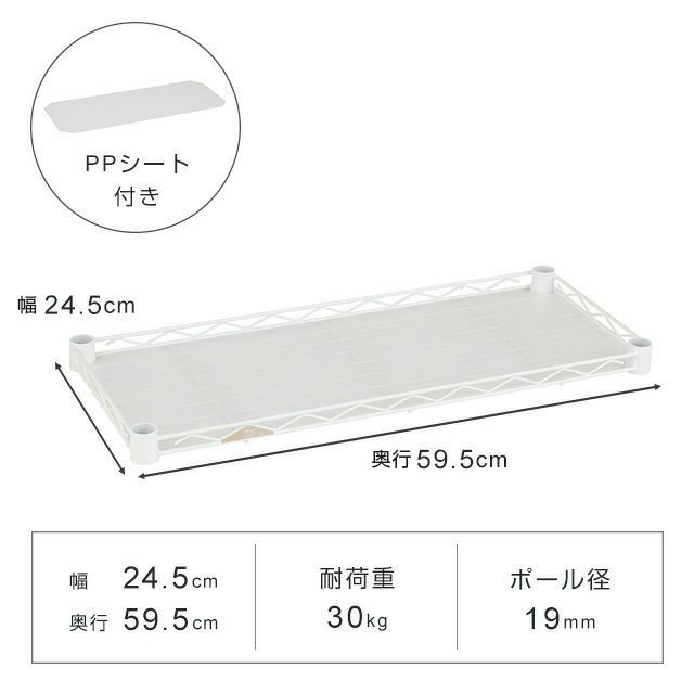 スチールシェルフ 幅24.5×奥行59.5cm ルミナスラテ スチールラック パーツ ポール径19mm用 棚 幅25cm LLS2560SLP