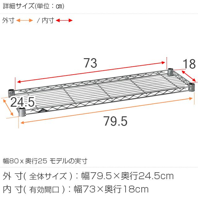 スチールシェルフ 幅79.5×奥行24.5cm ルミナスライト スチールラック パーツ ポール径19mm用 棚 幅80cm ST8025
