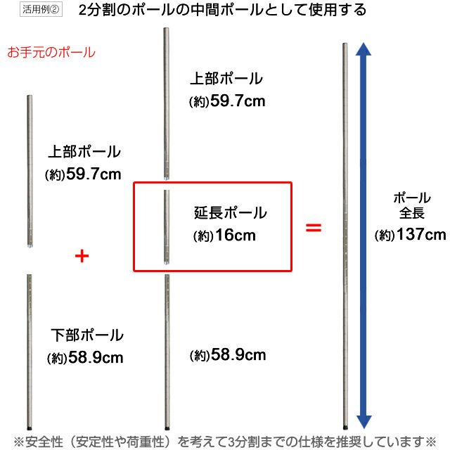 備考 2011年以前に購入いただいたラックは、ポールの仕様変更があり延長できません。