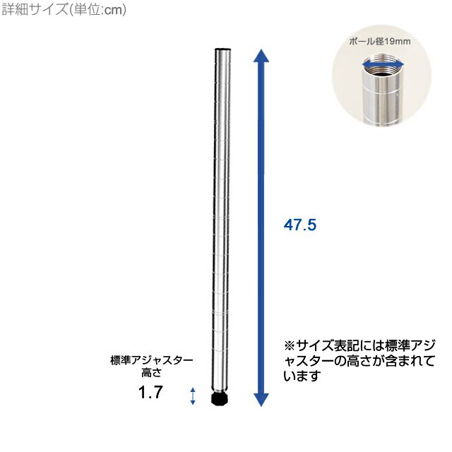 基本ポール 長さ47.5cm ルミナスライト ポール径19mm スチールラック パーツ PHT-0046SL