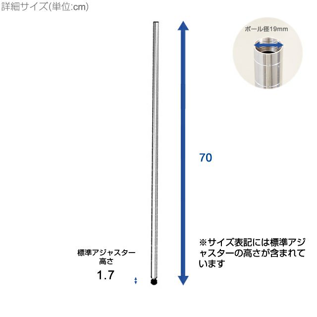 基本ポール 長さ70cm ルミナスライト ポール径19mm スチールラック パーツ PHT-0070SL
