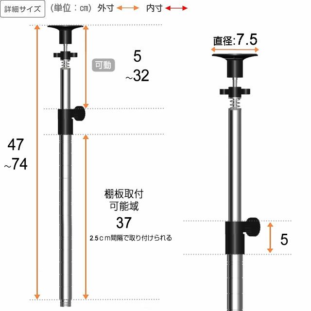 基本ポールに取り付け、天井につっぱることでラックを安定させられるポールです。