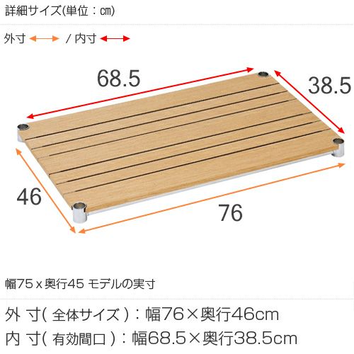 木製シェルフ 幅76×奥行46cm ルミナスレギュラー スチールシェルフ パーツ 棚 ポール径25mm用 幅75cm WS7645-NASL