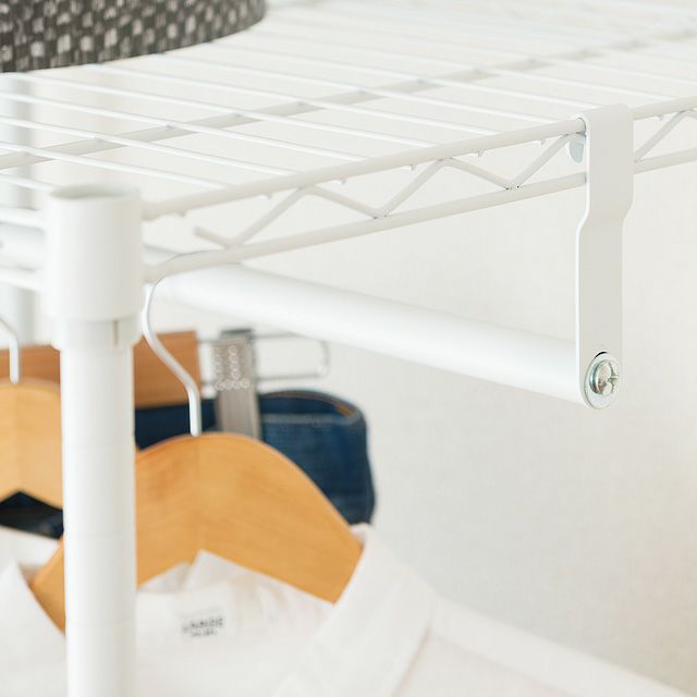 スチールシェルフ:(約)50kg ハンガーポール:(約)20kg ラック全体耐荷重:150kg※耐荷重の値は、シェルフ・ハンガーポールに均等に荷重をかけた場合の値です。