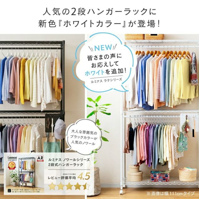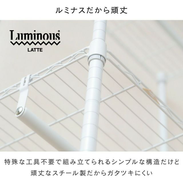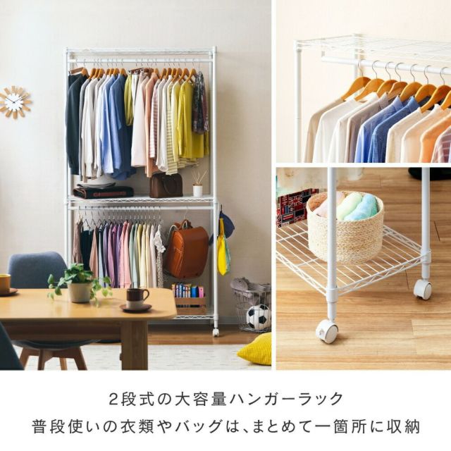シェルフ×3枚、スリーブ×12組(+予備1組)、ポール(分割式)×各4本、アジャスター×4個、キャスター(ストッパー付)×2個、キャスター(ストッパー無し)×2個、スパナ×1個、ハンガーポールセット×2セット、S字フック×2個、有孔ボード×1枚