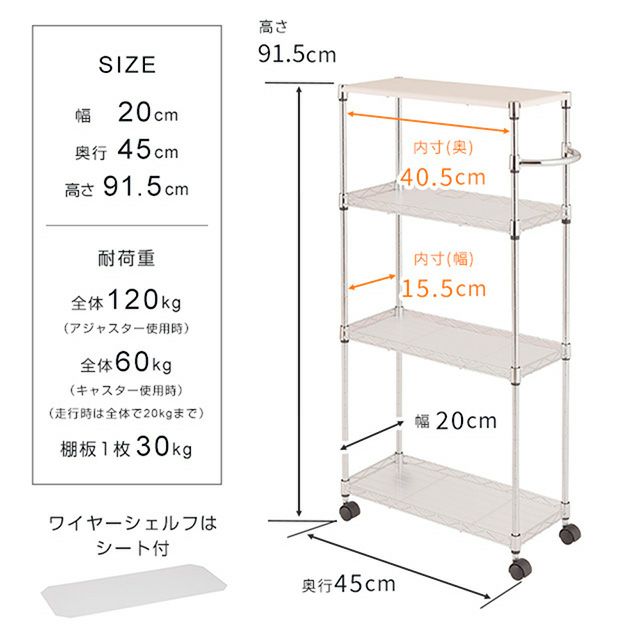 幅20×奥行45×高さ91.5cm ※高さはキャスター装着時の値です。 |