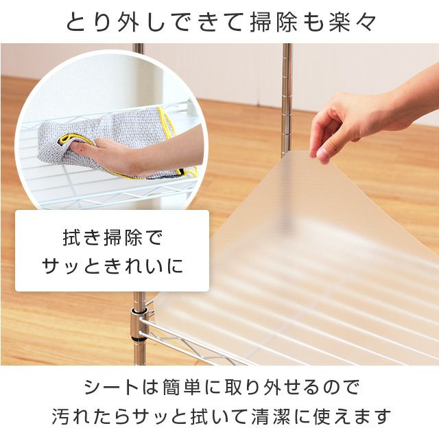 木天板×1、シェルフ×3、上部ポール×2、下部ポール×2、PPシート×3、スリーブ×18組(+予備×1組)、ねじ(B)×2(+予備×1)、ハンドル×1、キャスター×4、スパナ×1、アジャスター×4