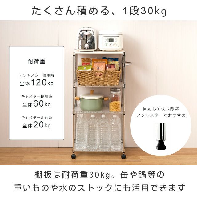 30kg ※値はシェルフ全面に均等に荷重をかけた場合の値になります。 |