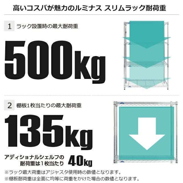 アディショナル (置き棚) | 40kg ※値はシェルフ全面に均等荷重をかけた場合 |