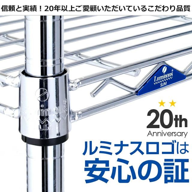 | 材質 | スチールシェルフ(棚板)・ポール:スチール(クロームメッキ) スリーブ:ABS樹脂 テンション部分:ポリプロピレン・ABS樹脂 |