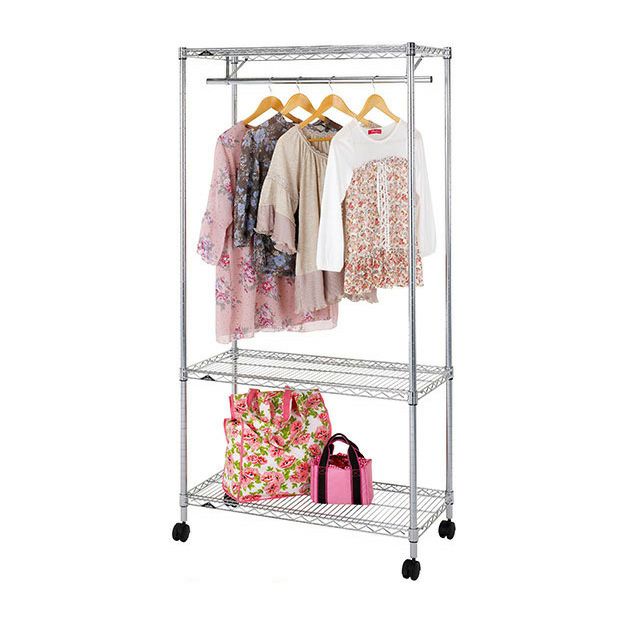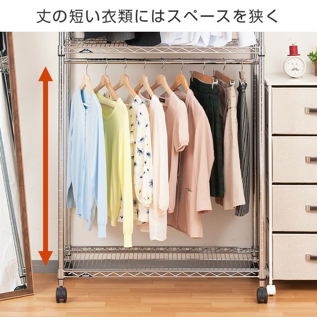 | セット内容 | スチールシェルフ(棚板)×3枚 スリーブ(棚板取付用部品)×14組 ポール×4本 ハンガーポール×1本 ナイロンキャスター(ストッパー付)×2個 ナイロンキャスター(ストッパーなし)×2個 標準アジャスター×4個 スパナ×1個(キャスター取付用) |