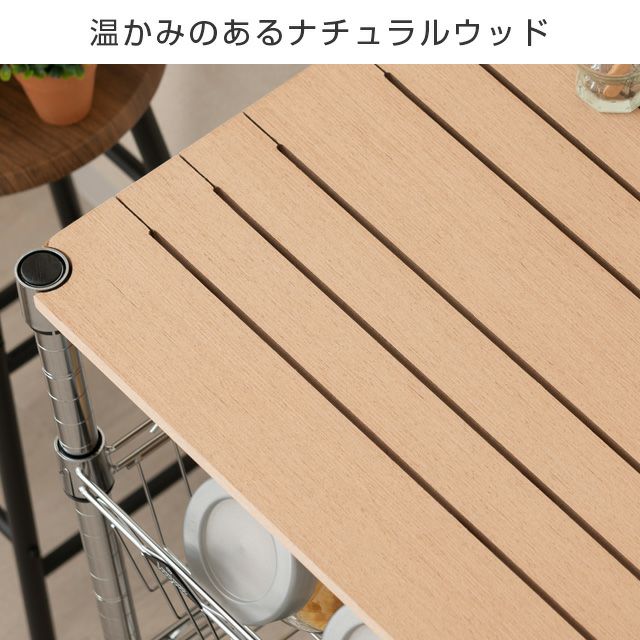 | 材質 | スチールシェルフ(棚板)・ポール:スチール(クロームメッキ) ナイロンキャスター:ナイロン樹脂 スリーブ:ABS樹脂 |