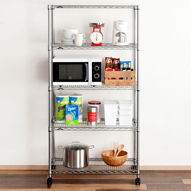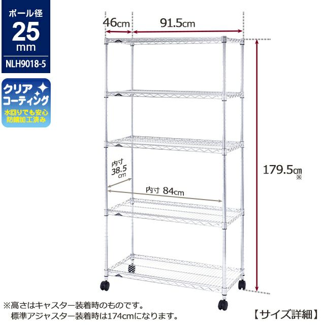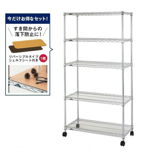 | 材質 | スチールシェルフ(棚板)・ポール:スチール(クロームメッキ) ナイロンキャスター:ナイロン樹脂 スリーブ:ABS樹脂 |