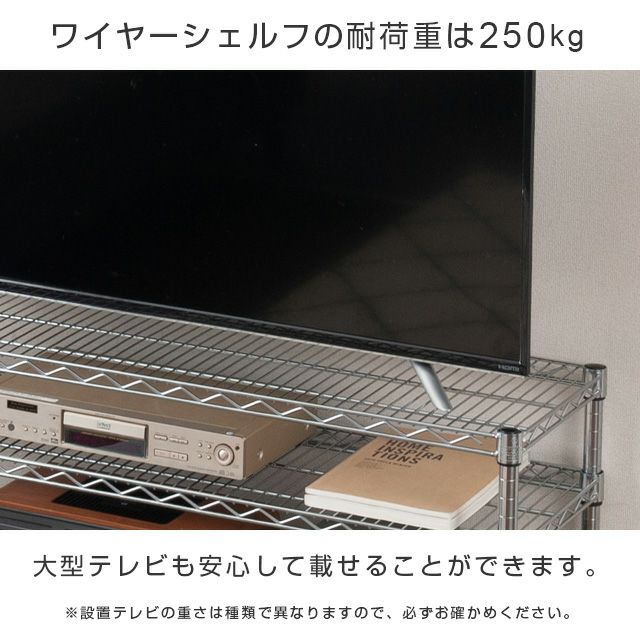 | 耐荷重(約) | 棚板1枚あたり | ワイヤーシェルフ:250kg ウッドシェルフ:80kg※値はシェルフ全面に均等に荷重をかけた場合の値になります。 |