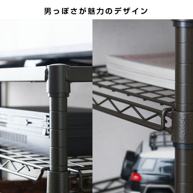全体:190kg、ワイヤーシェルフ1枚:80kg、ウッドシェルフ1枚:80kg、置きシェルフ1枚:30kg ※値はシェルフ全面に均等に荷重をかけた場合の値になります。 |